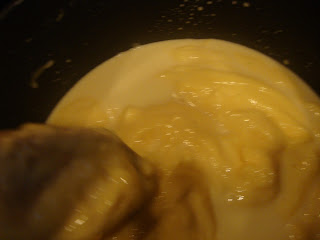 In a separate 2 quart sauce pan, remaining 6 tablespoons butter. Add flour to create a rue (paste)