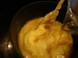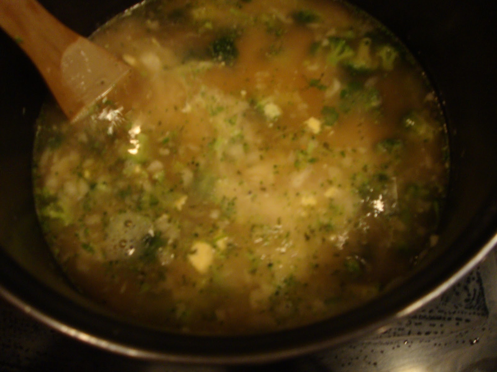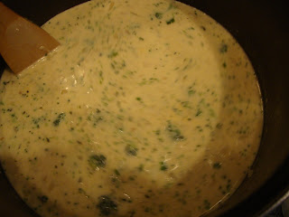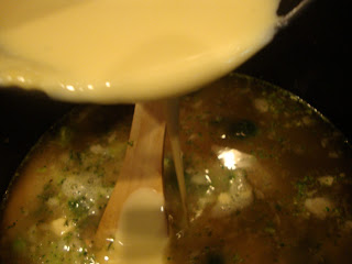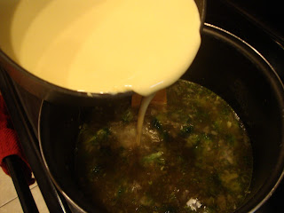 Once all your remaining broth is combined into the cheese sauce, it’s time to add the cheese sauce to your soup.