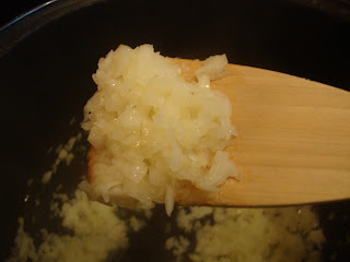 Melt 1 tablespoon butter in soup stock pot and add onion. Cook just until onion starts to soften.