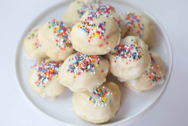 - dust your hands with cornstarch and roll about a tablespoon of the cookie dough into a ball and place it on the cookie sheet. Repeat until all the dough is rolled into balls. Dip a fork into cornstarch and use the fork to indent dough balls. Add a few sprinkles on top.
