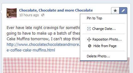 Once you’ve posted something to Facebook, hopefully a photo, In the upper right corner you’ll see a star and a pencil. Click on the pencil and your very first option is Pin to Top. Click and Done. Anyone snooping around your page, and I hope everyone else is out there snooping like I do, will see your current favorite post.