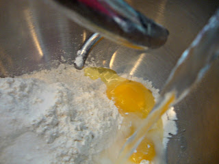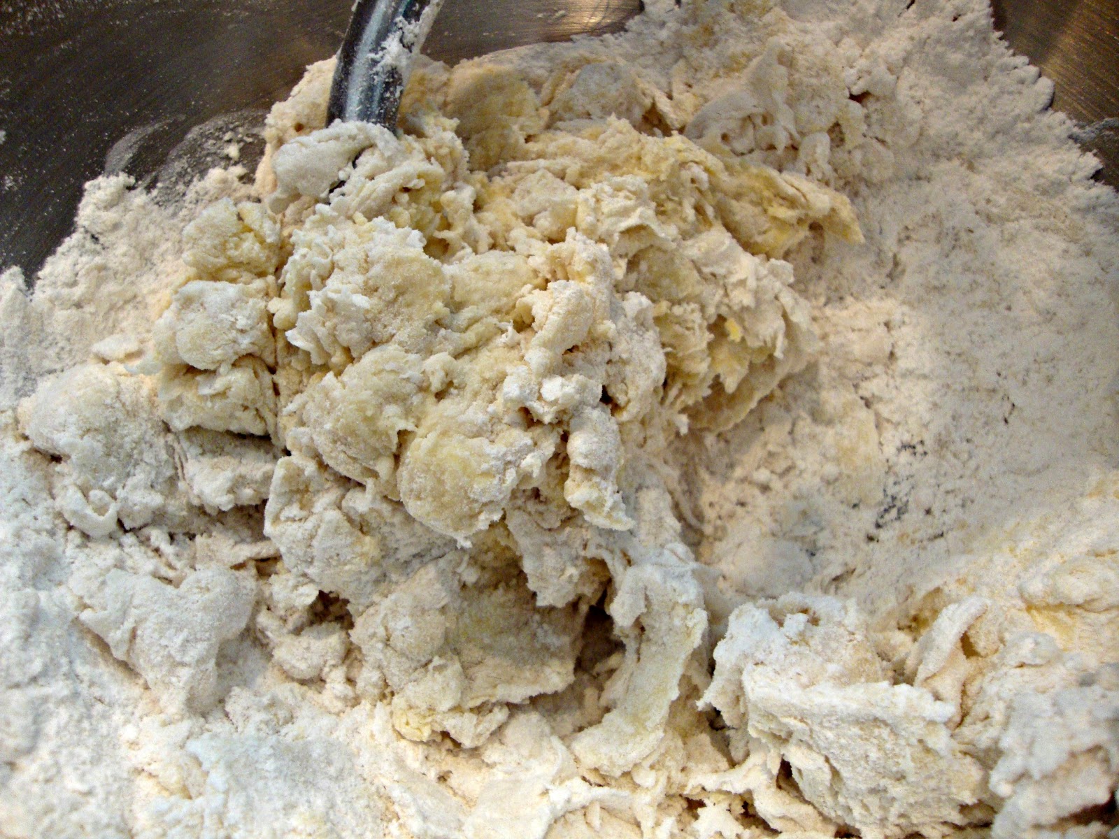 Place everything into the bowl of your mixer except 1 egg. Separate the 1 egg and set aside the white for an egg wash. Add remaining egg yolk to mixer bowl. Mix on low until everything is blended together.