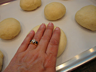 Shape into rounded balls, taking time to make sure no creases are showing. Place on greased or parchment lined baking sheet.