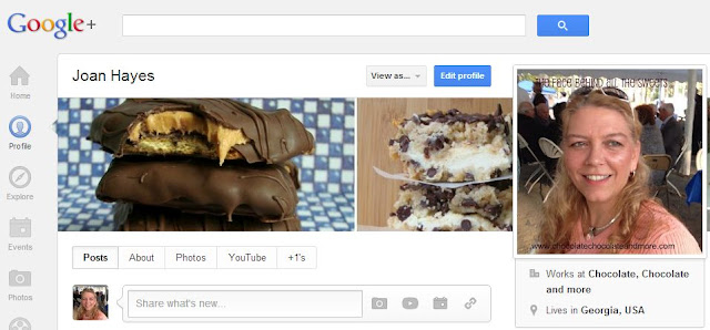 I’m going to assume you have your account set up with your NAME, yes your name, not your blog or business name. Google doesn’t like fake names, even as a nickname and they will find you. Google is all about being a PERSON in front of what you are representing. Facebook always let us hide behind our pages. You know what? I found on Facebook, soon after I put my name in my about me, easy for everyone to see, I got more comments. People could see ME, as Joan, a person with 3 kids at home, a hubby and dirty dishes. I was no longer this nameless thing posting sweet treats to lure them in. I was like THEM. Think about the party where you don’t know anyone, aren’t you going to try and find someone like you to go up and talk to? Google is trying to make it easier to help you find your new friends.