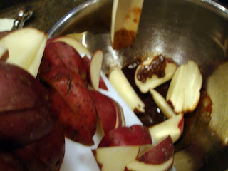 Add potatoes and coat well.