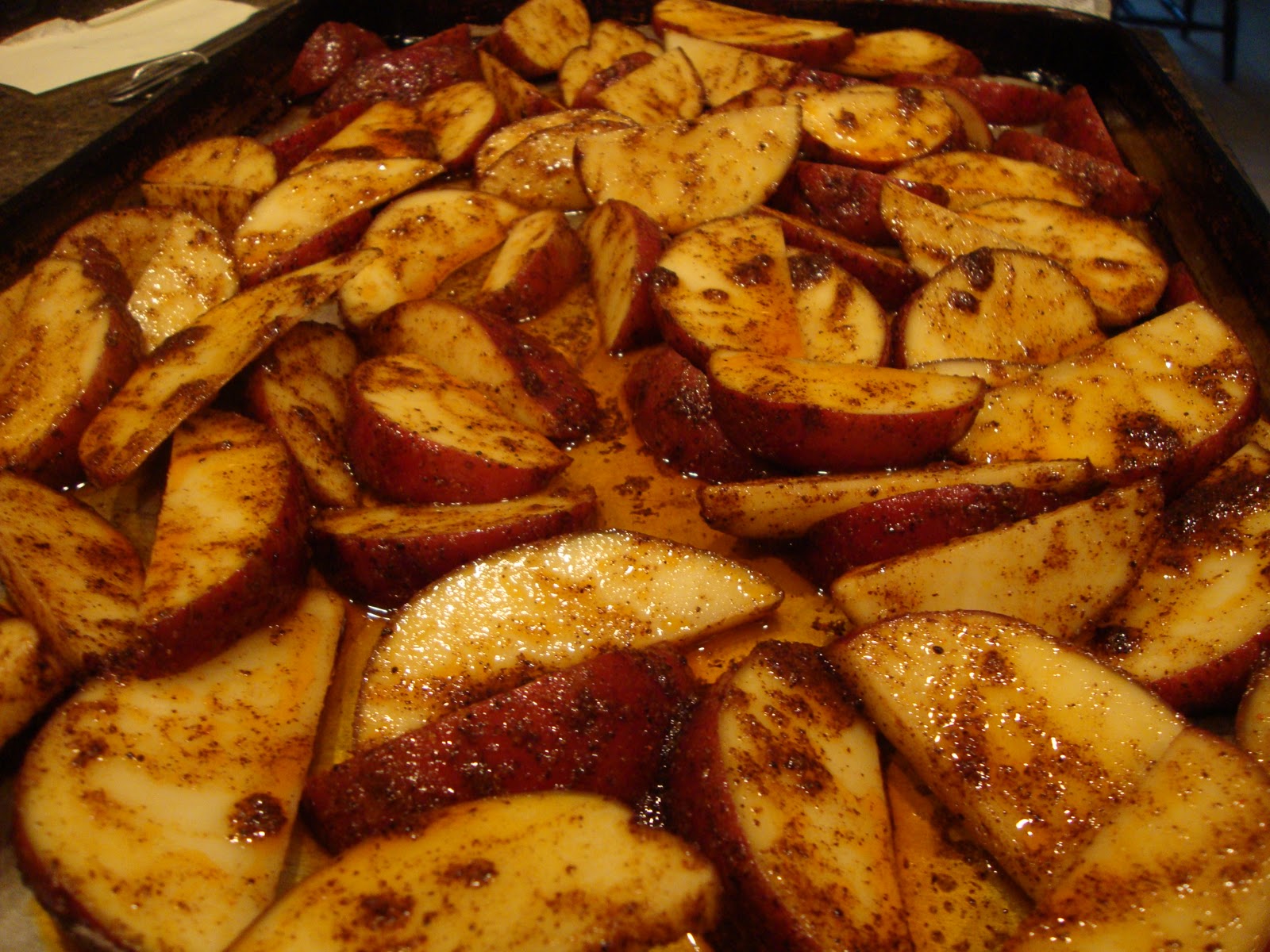 This is a simple, easy recipe. Found it a few months back at One Perfect Bite. The first time we made them, I used Idaho potatoes. They were wonderful. Since then, I’ve used red potatoes, yellow potatoes. I think any potato would work well with this recipe.