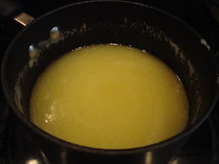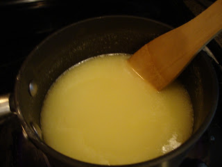 In a 3 quart saucepan (I used a 2 quart) over medium high heat, bring butter, sugar and corn syrup to a boil,