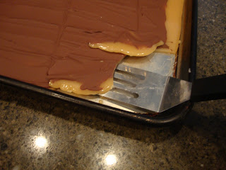 let rest a minute (for chocolate to start to melt) then spread evenly to coat.