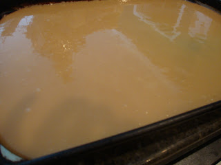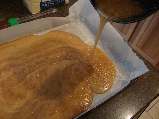Remove pan from heat and immediately pour into prepared jelly roll pan.